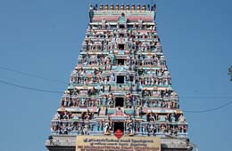 This temple is close to Aduthurai and 15 km from Kumbakonam. Among the planets, Sun occupies the prime position. That is why the first day of the week is named Sunday. The seven planets including Saturn form the seven days of the week. The eighth planet is called Rahu. is allotted 10 1/2 hours in seven days of the week. On each day 1-1/2 hours is allotted for Rahu. This one and a half hour is known as Rahu Kalam. The nineth planet is known as Ketu. For Ketu also the same is allotted. This one and a half hours is known as Yama gandam Both Rahu's Time and Ketu's time are considered inauspicious time.