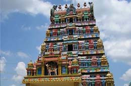 This temple is close to Aduthurai and 15 km from Kumbakonam. Among the planets, Sun occupies the prime position. That is why the first day of the week is named Sunday. The seven planets including Saturn form the seven days of the week. The eighth planet is called Rahu. is allotted 10 1/2 hours in seven days of the week. On each day 1-1/2 hours is allotted for Rahu. This one and a half hour is known as Rahu Kalam. The nineth planet is known as Ketu. For Ketu also the same is allotted. This one and a half hours is known as Yama gandam Both Rahu's Time and Ketu's time are considered inauspicious time.